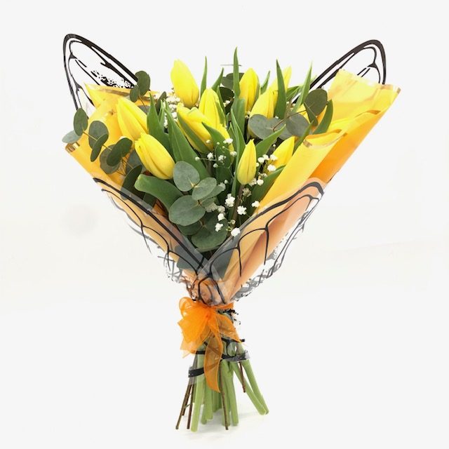 Crea un momento único con este elegante ramo compuesto por  15 tulipanes de color amarillo.